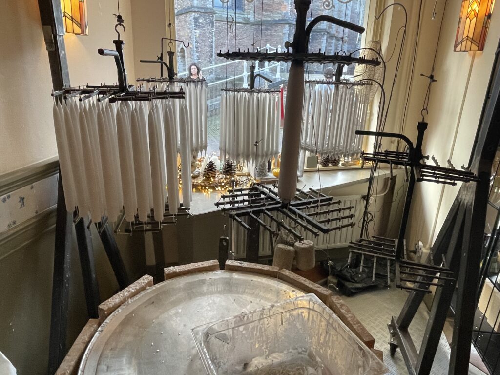 Kerstverlichting in Delft en de gezelligheid van een begeleide wandeling door Delft met onze gids Frans. De start in de kaarsenmakerij, met een gepassioneerde eigenaar die zijn en het verhaal over de zaak verteld.